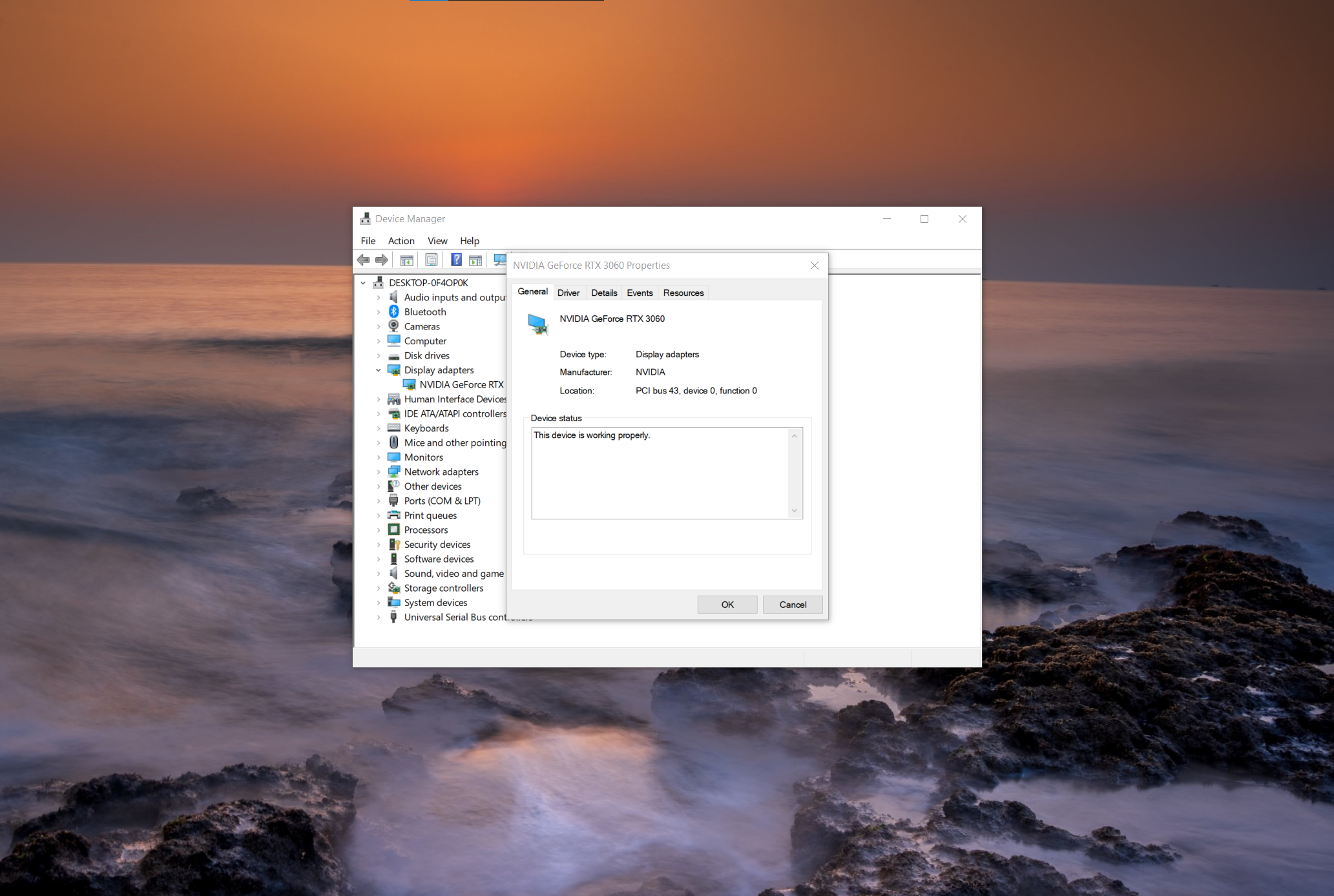 Right-click the NVIDIA GPU and click Properties.
